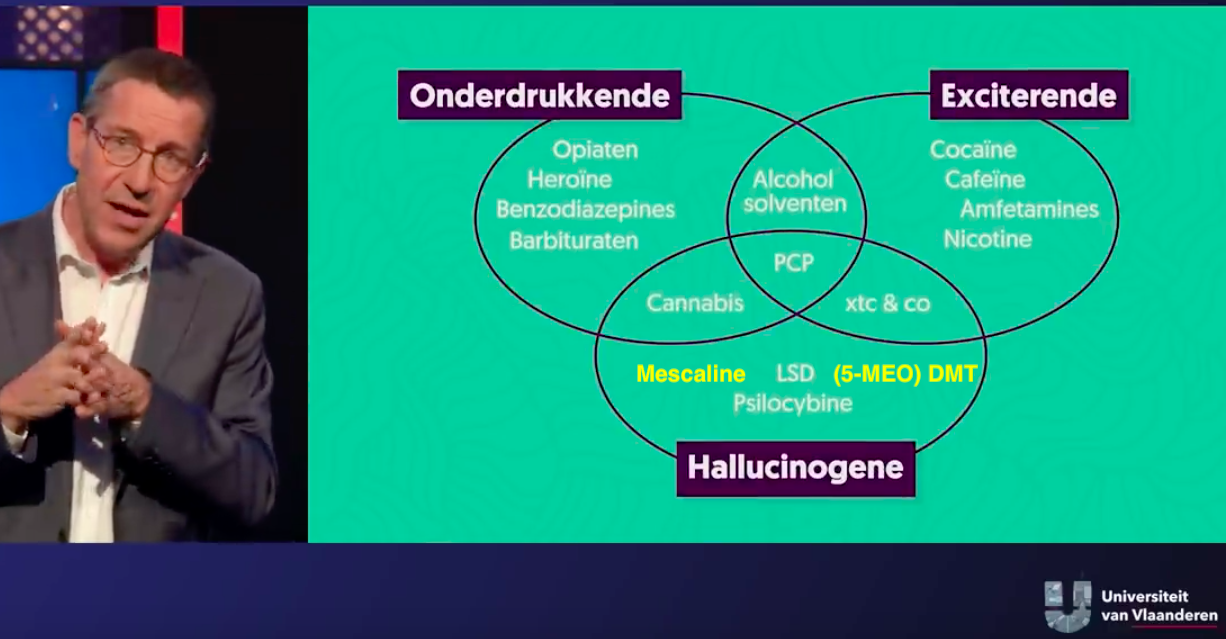 Ik heb het dus over mescaline, psilocybine en DMT. Eigenlijk dus maar over drie soorten. LSD tel ik al niet meer mee. Dat is als enige in de cirkel geplaatst door die Vlaamse toxicoloog die blijkbaar niet meer inspiratie had dan die éne soort.