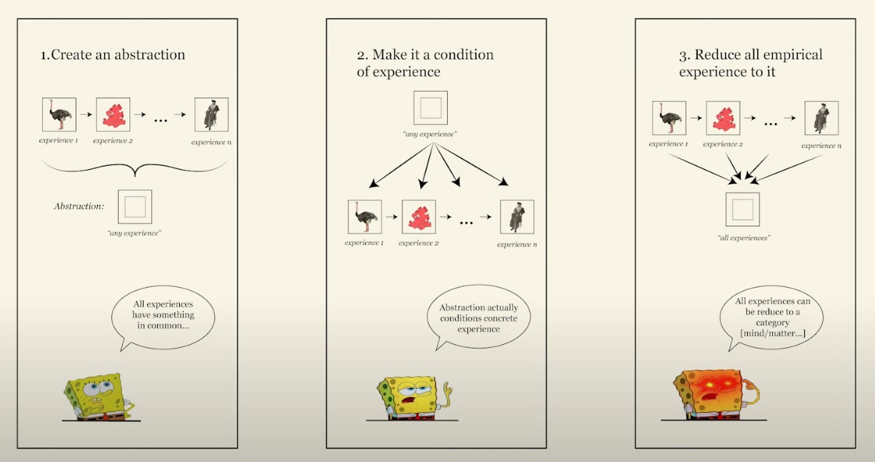 Kant maakt dezelfde fout, maar op een andere manier. Kant zegt dat we niet voorbij de fenomenen kunnen kijken. Maar hij veronderstelt dat er buiten de fenomenale werkelijkheid dingen kunnen zijn. Hoe weet hij dat? Dat is metafysische speculatie. Het is ook het meest controversiële aspect van zijn filosofie.