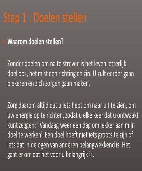 Het maakt verder niet echt uit of de doelen behaald worden, want het gaat om het 'er naar toe leven', maar af en toe een doel bereiken werkt wel motiverend om er mee door te blijven gaan, daardoor krijg je er namelijk meer zin in. Anders lijkt een dergelijk zinvol bestaan wel erg veel op telkens neuken zonder ooit klaar te komen. Niet dat neuken op zichzelf vervelend is, maar zonder een motiverend doel zoals klaarkomen is de lol er vaak toch al vlug vanaf. Als men vooraf weet dat men niet klaar gaat komen heeft men er meestal minder zin in.